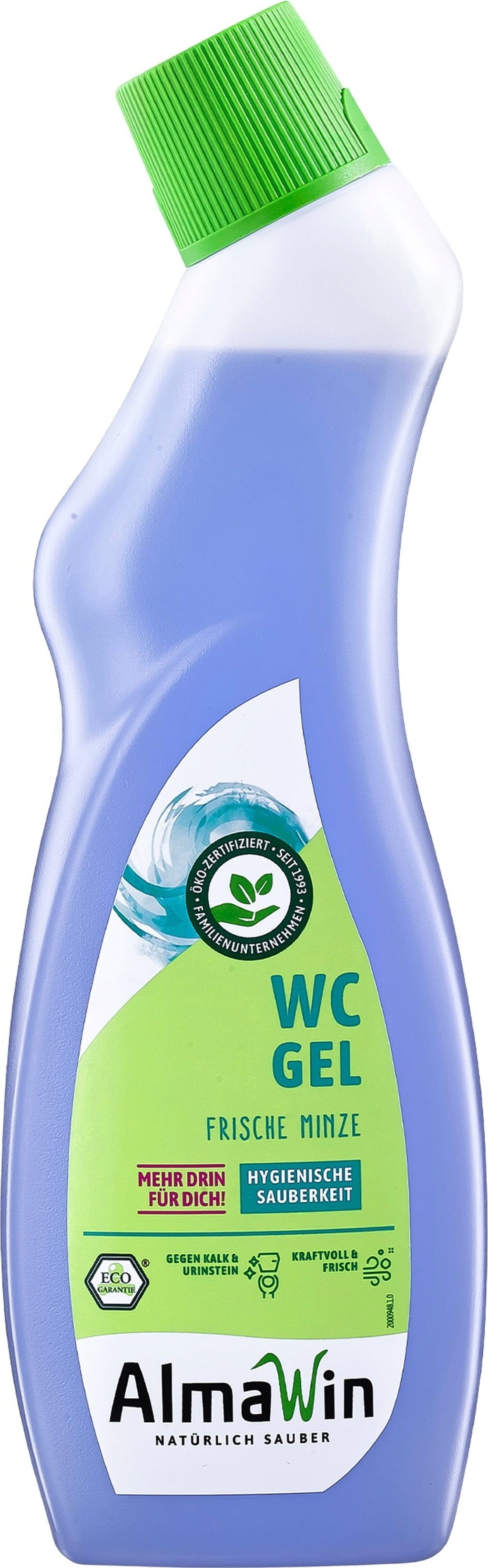 The Active Gel Toilet Bowl Cleaner ny Almwin is distinguished by its thick liquid power. It adheres very well to the surface of the toilet bowl and can thus develop its full cleaning power. The ingredients consist of selected vegetable and mineral raw materials.