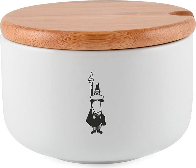 Whether placed next to the coffee machine or at the table, the beautifully shaped sugar bowl made of high-quality porcelain with the iconic Bialetti man always cuts a fine figure.