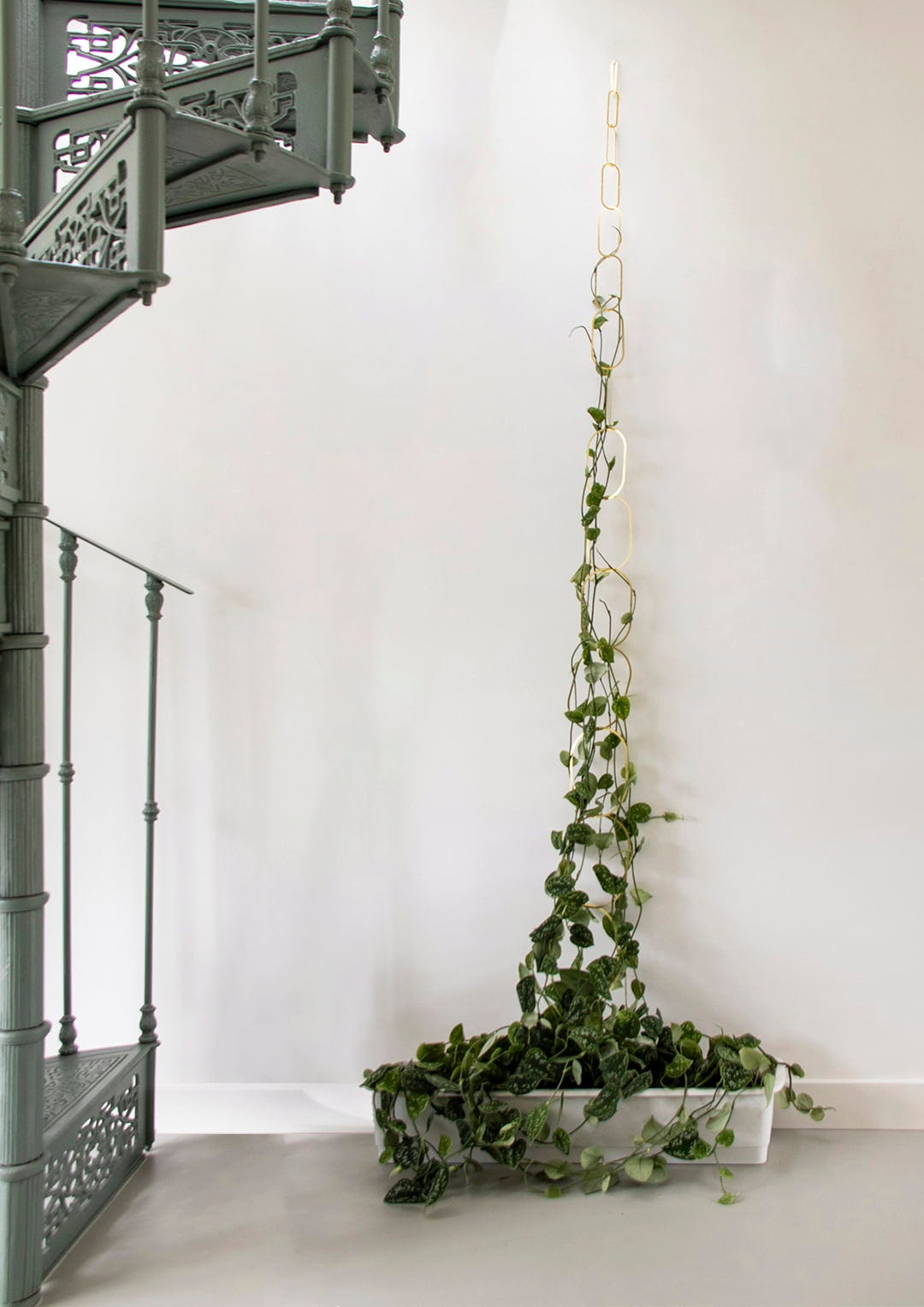 This elegant climbing aid for plants such as ivy, clematis, jasmine or grapevines is uniquely stylish. With its minimalist design, it blends perfectly into modern rooms and also makes outdoor areas chic. The brass, coated with a protective layer, develops an attractive stainless steel rust over time, but can easily be polished to a high gloss again.