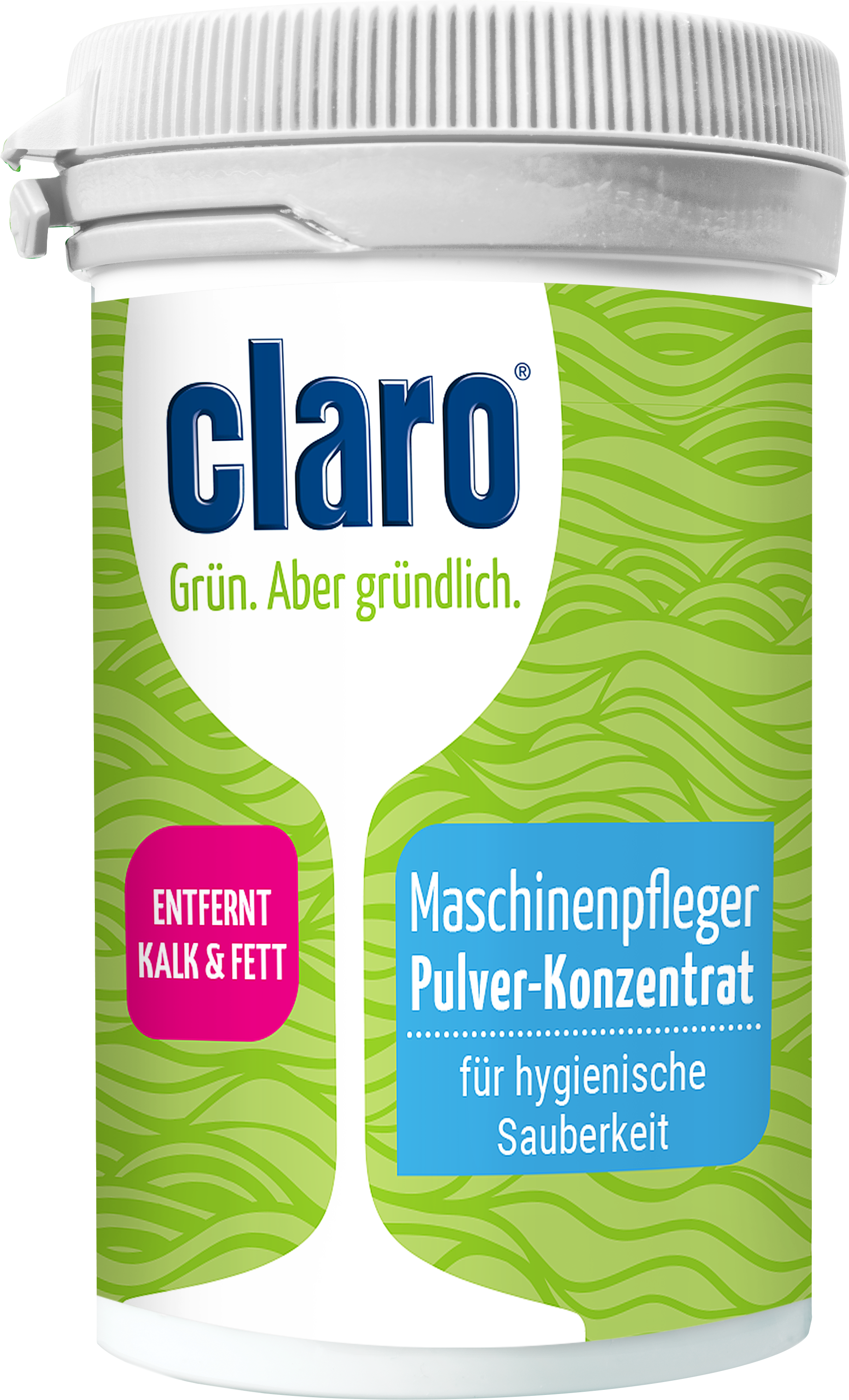 The machine caretaker from claro can help here: the alkaline component of the cleaner first acts powerfully against grease and food residues, then the separating layer between the dosing chambers dissolves, and the acidic cleaner is used to remove limescale deposits from your dishwasher.