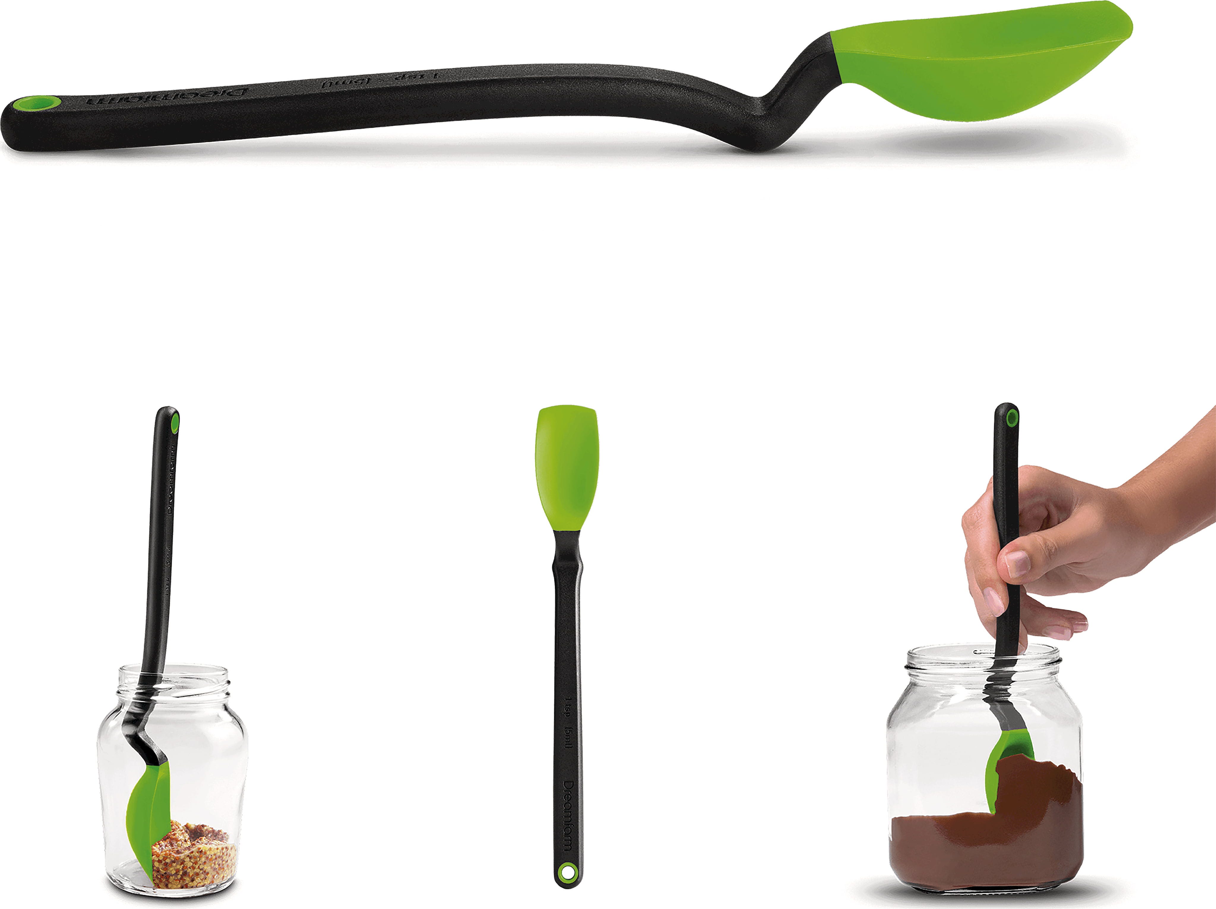 The Mini Supoon Silicone Spoon by Dreamfarm is the ultimate kitchen multi-tasker, combining stirring, scooping, measuring, and scraping into one compact tool. Its flexible silicone head is specifically designed to reach every corner of your jam jars or nutella pots, ensuring you can scrape out every last bit with ease.
