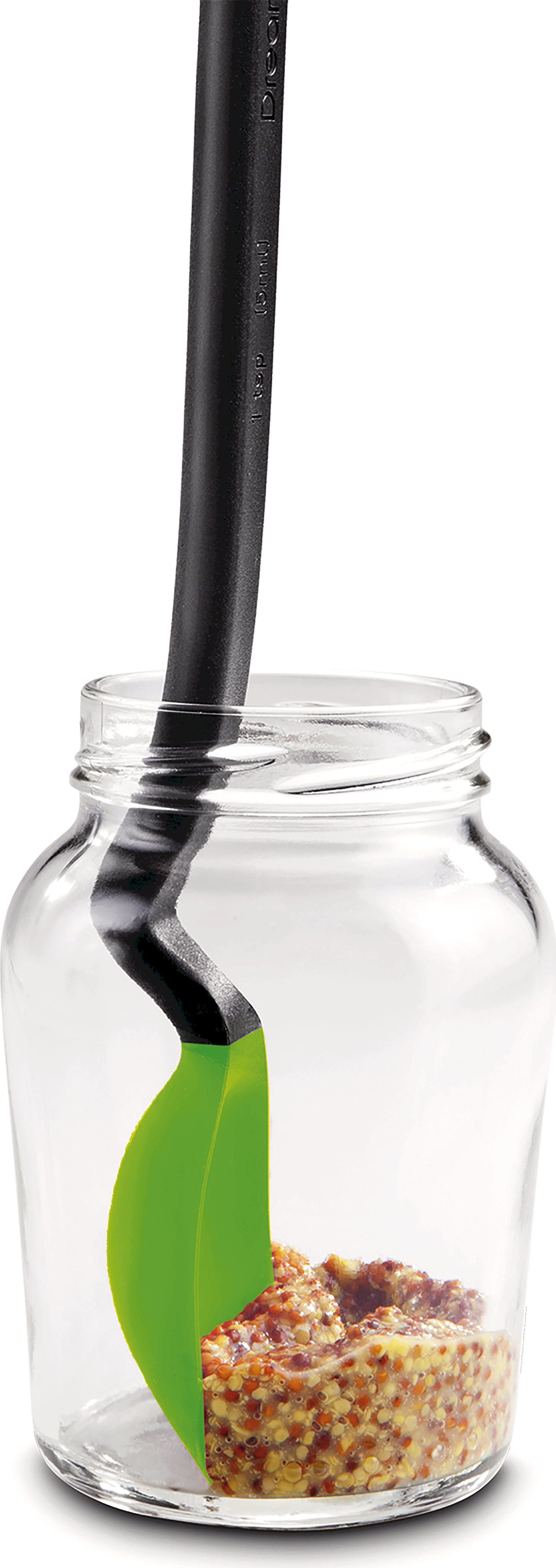 The clever "sit up" handle design keeps the spoon head raised off your worktop, allowing you to set it down mid-use without leaving a mess. Alternatively, you can simply hook it onto the rim of your jar or pan. With a built-in 5 ml (teaspoon) measurement and heat resistance up to 260°C, the Mini Supoon is as practical as it is versatile.
