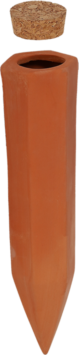 The Watering Stake made of natural terracotta keeps your plants supplied with water for a few days so you don't have to water them every day.