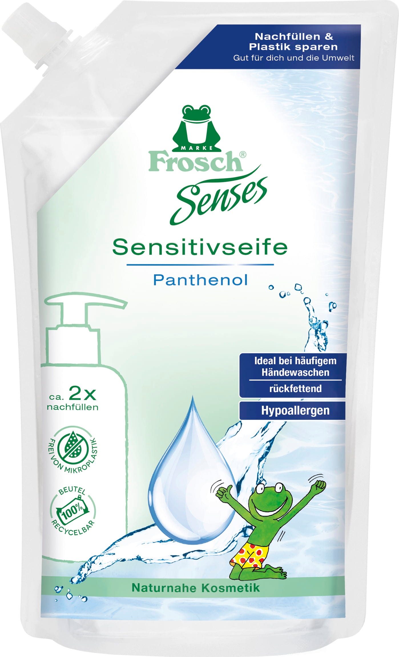 With the Frosch liquid soap refill bag, you can replenish your hand soap while reducing packaging waste. This 100% recyclable refill bag generates less waste compared to purchasing a new plastic soap dispenser, making it an eco-friendly choice.