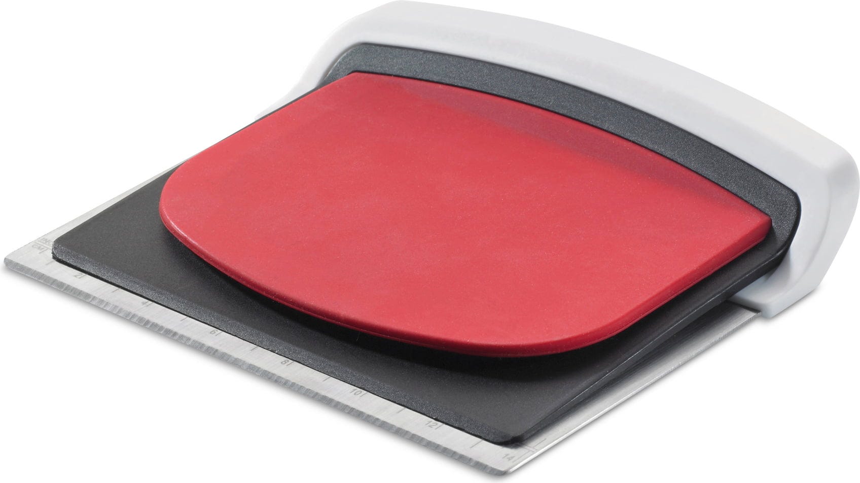 - Stainless steel dough cutter with measurement markings for portioning dough quantities