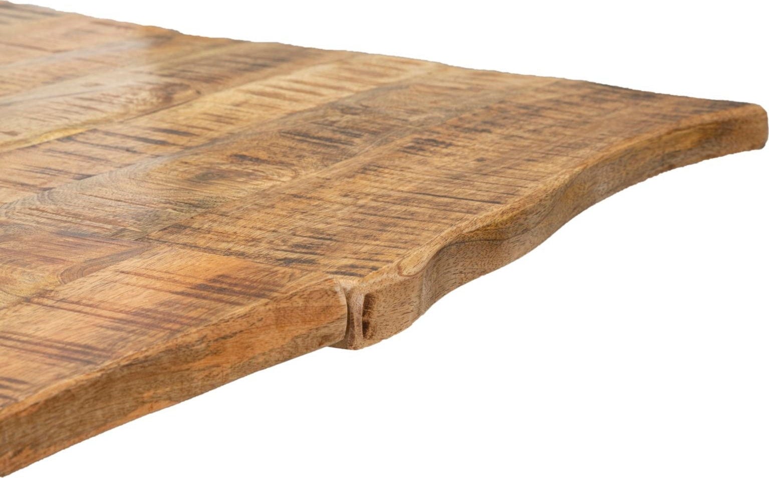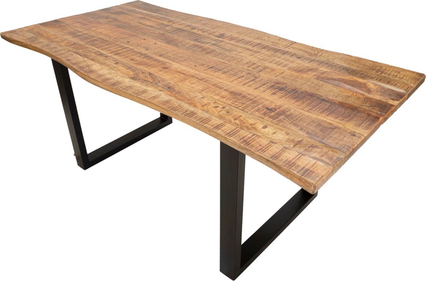 The striking wooden tabletop with its natural grain rests on stable, U-shaped legs made of black metal, giving the design a clear and timeless structure. The highlight: thanks to the practical extension function, the table surface can be expanded in no time, so you are always flexibly prepared for guests. Whether for a quick breakfast or a large family dinner – this table is a durable statement piece for every home!