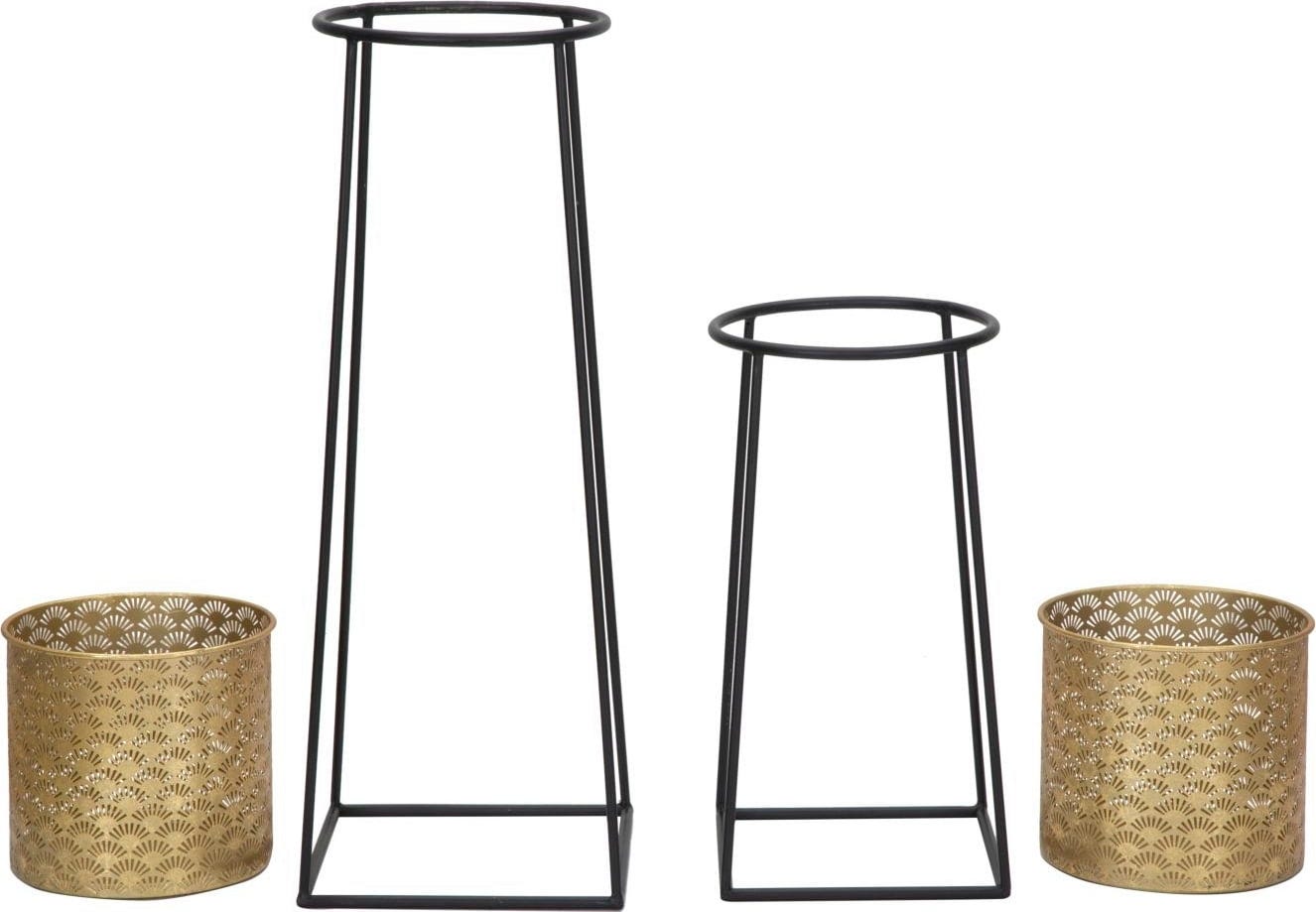 They stand on a high, black metal base, whose conical, clear lines form a modern, geometric base. The pot holders are removable, making it easy to plant and care for your plants. This duo is ideal for displaying plants in style and adding timeless class to any room.