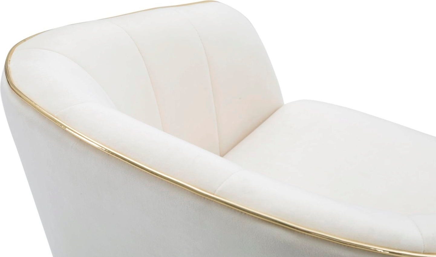 Add a touch of class and relaxing comfort to your room with this elegant armchair. It features a soft, padded fabric cover in a stylish cream colour. The elegant shape is emphasised by a shiny gold piping edging that provides a luxurious accent.