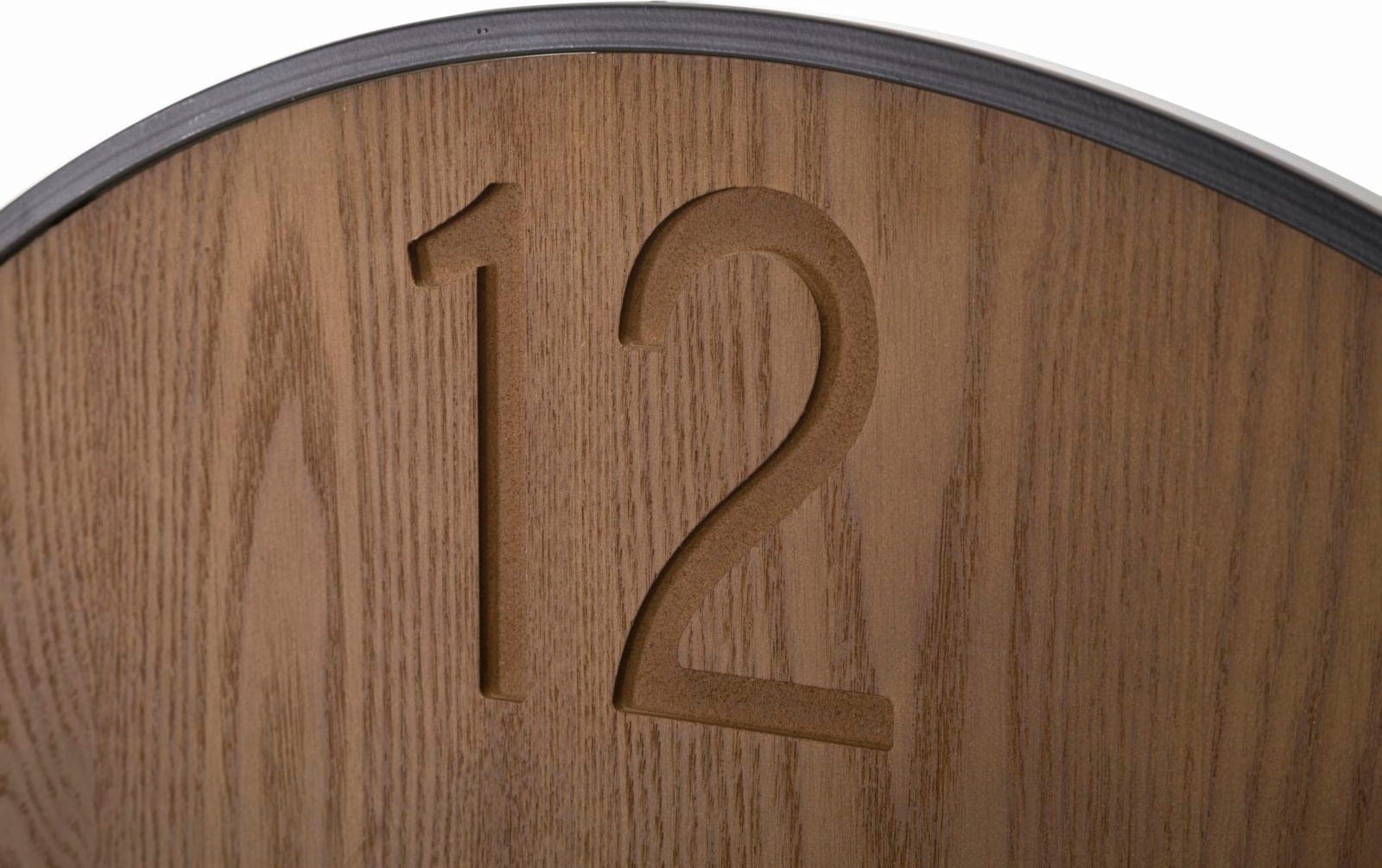 Bring timeless elegance and warmth into your home with the Wood/Leaf Wall Clock by Mauro Ferretti. The round dial impresses with its warm wood grain look, while the leaf-shaped carvings, which protrude beyond the lower edge of the clock as high-contrast black and white ginkgo elements, are a special eye-catcher.