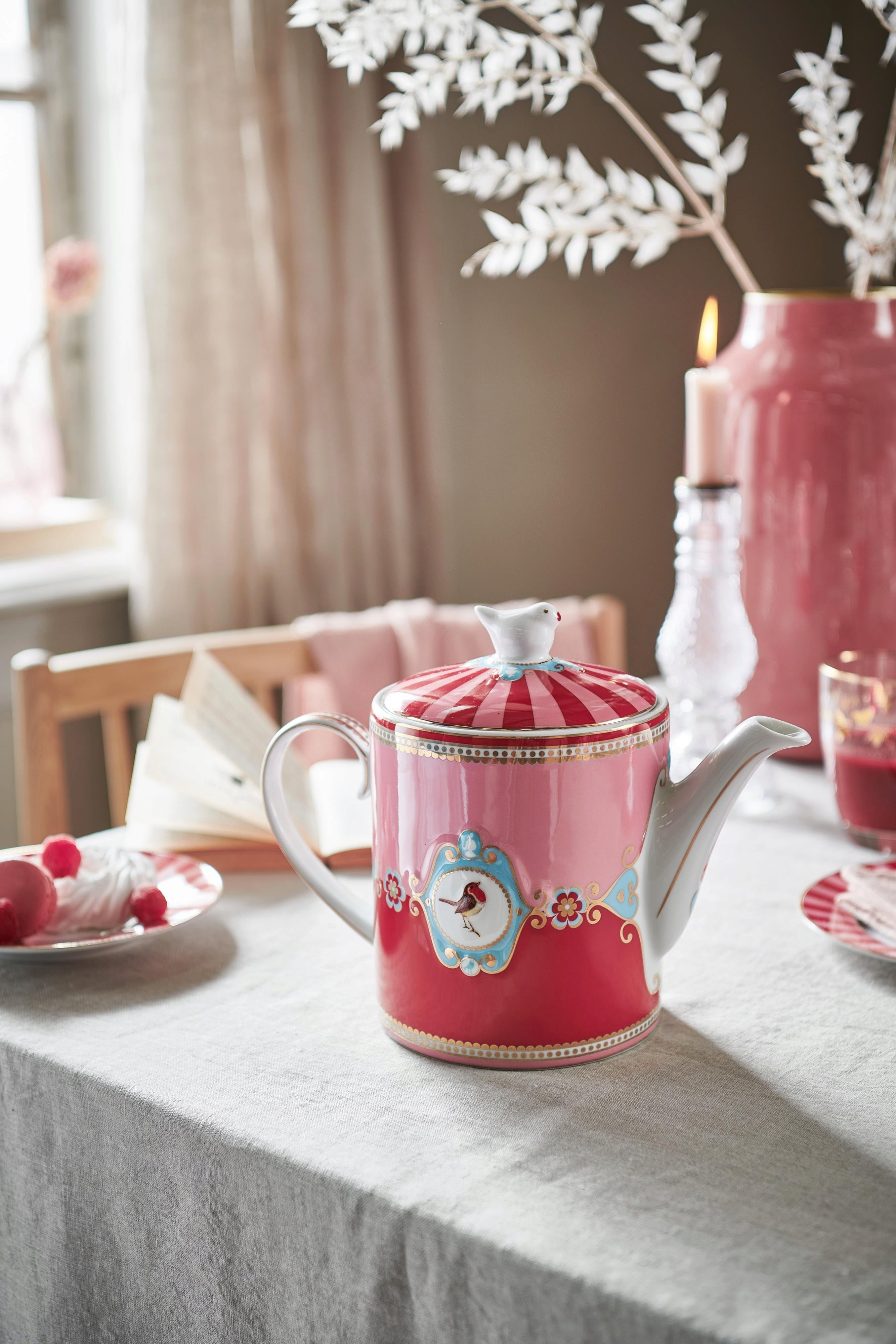 Pip Studio Love Birds Teapot, Red/Pink (1,30 l)