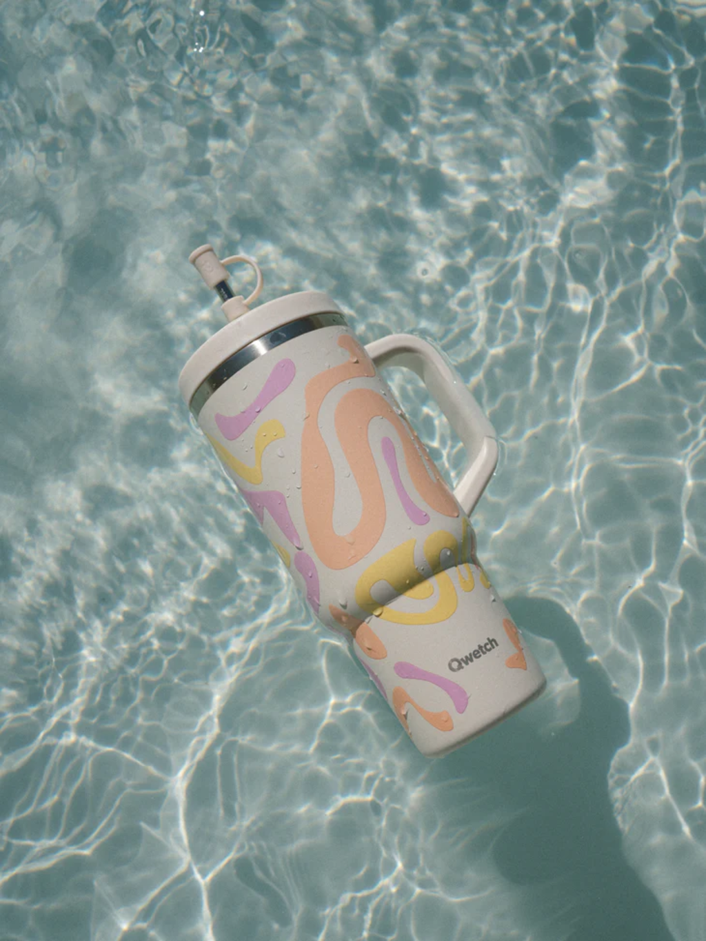 Qwetch Insulated Travel Cup Inox - Waves - 900 ml, Sable