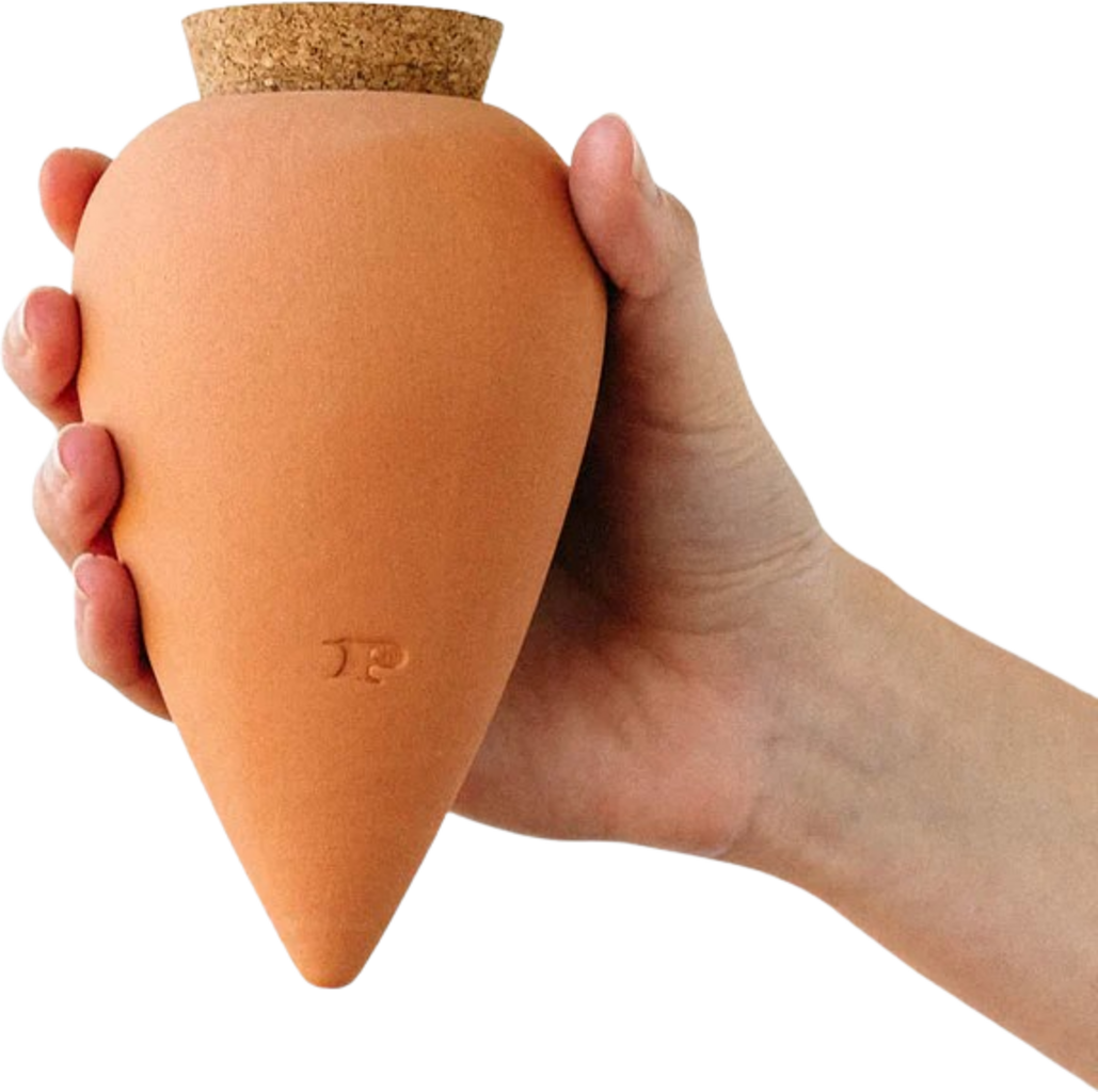The Olla is not only a practical accessory for your indoor plants, it is also decorative. The clay cone regulates the water flow into the soil and ensures a steady, round the clock water supply to your plants.