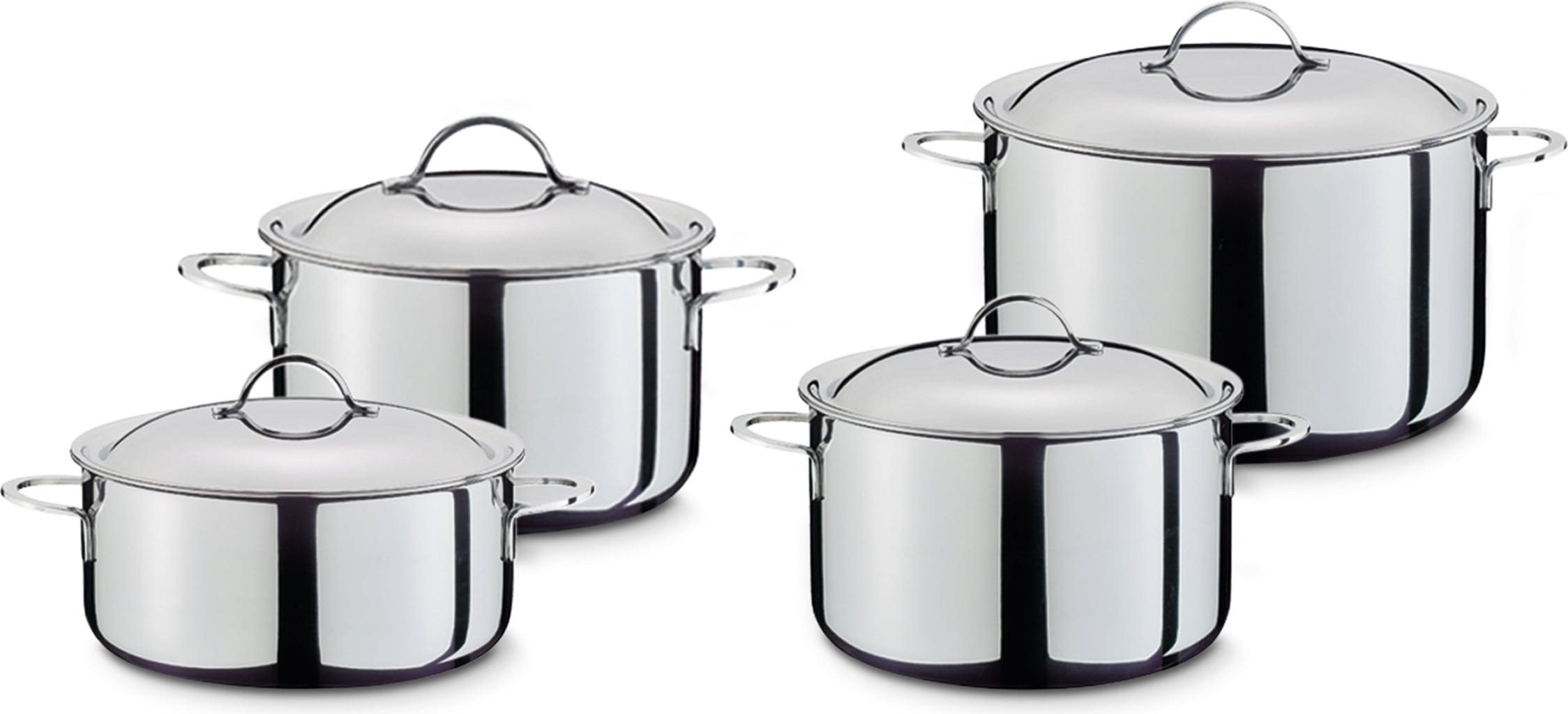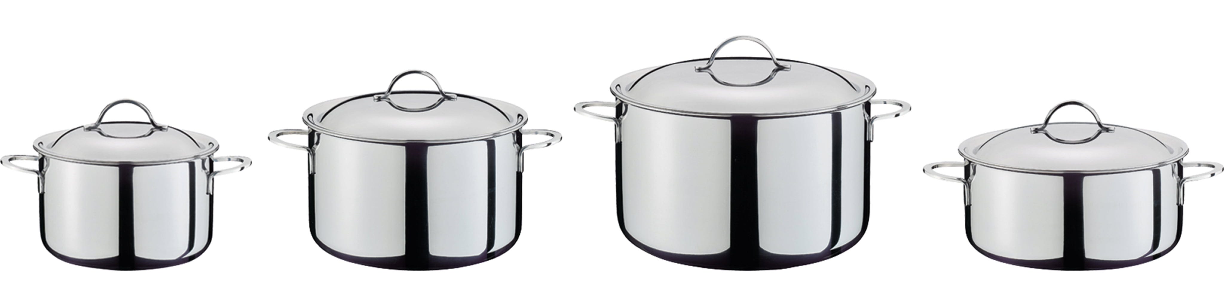Thanks to the attractive, highly polished design and the pleasantly lightweight, the set also cuts an excellent figure as a serving dish directly on the table. The closed rim protects against corrosion and guarantees a lifetime of enjoyment from your cookware. Whether pouring with pinpoint accuracy thanks to the pouring rim or cooking with little water thanks to the snug-fitting lids, this set combines functionality with true professional standards!