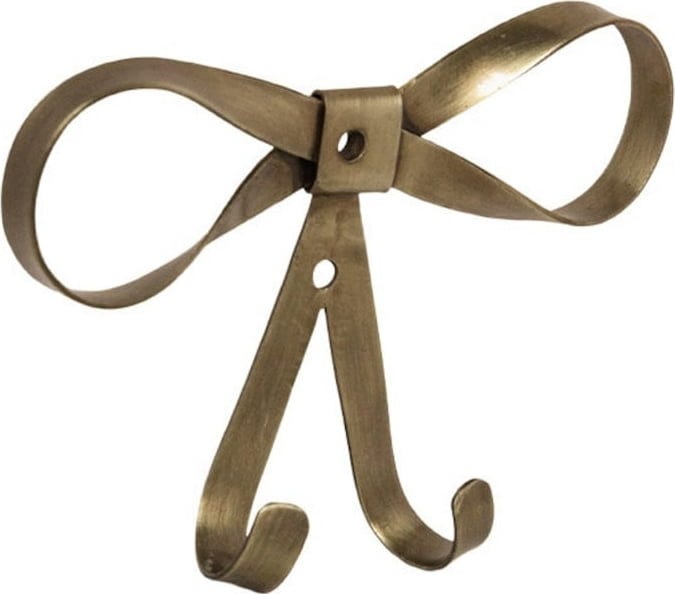 This wall hook adds an elegant vintage touch to any room. The charming bow design and antique brass finish make it a decorative feature, while the two hooks provide practical storage for clothing, bags or accessories.